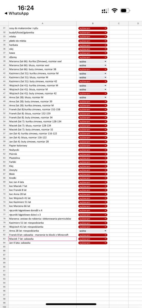 Dzięki Państwa niesamowitej hojności i zaangażowaniu, prawie wszystkie potrzeby z listy dla Rodziny zostały już zarezerwowane! To wspaniały dowód na to, jak wielką moc ma wspólne działanie. Jesteśmy wzruszeni natychmiastową reakcją i tym, jak szybko lista zaczęła topnieć.