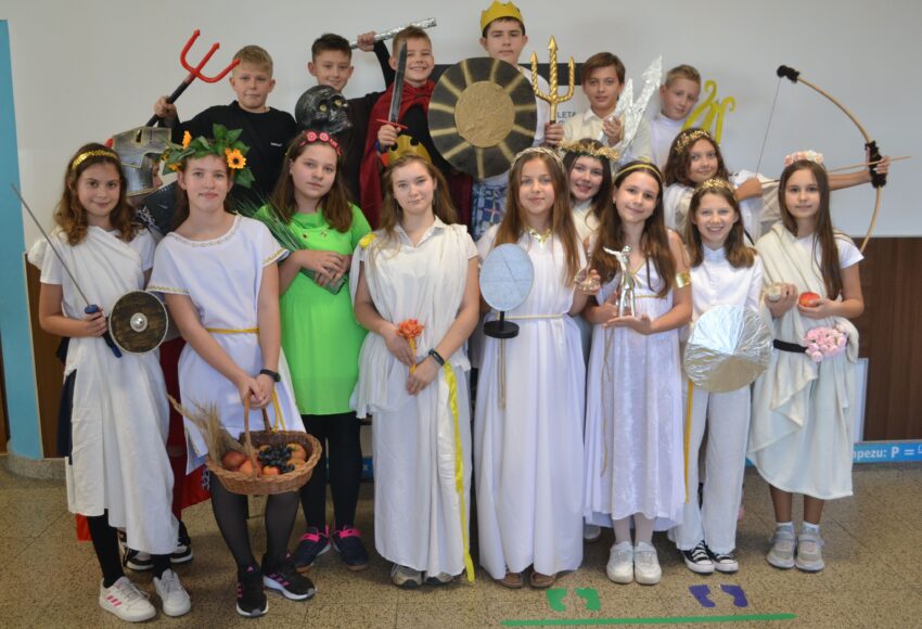 Jak każdego roku klasy piąte podczas zajęć historii wcieliły się w bogów greckich. Każdy z uczniów nie tylko przygotował strój oraz atrybuty wybranego przez siebie boga, ale również opowiedział o swej postaci kolegom i koleżankom z klasy. Uczniowie poradzili sobie z zadaniem doskonale.