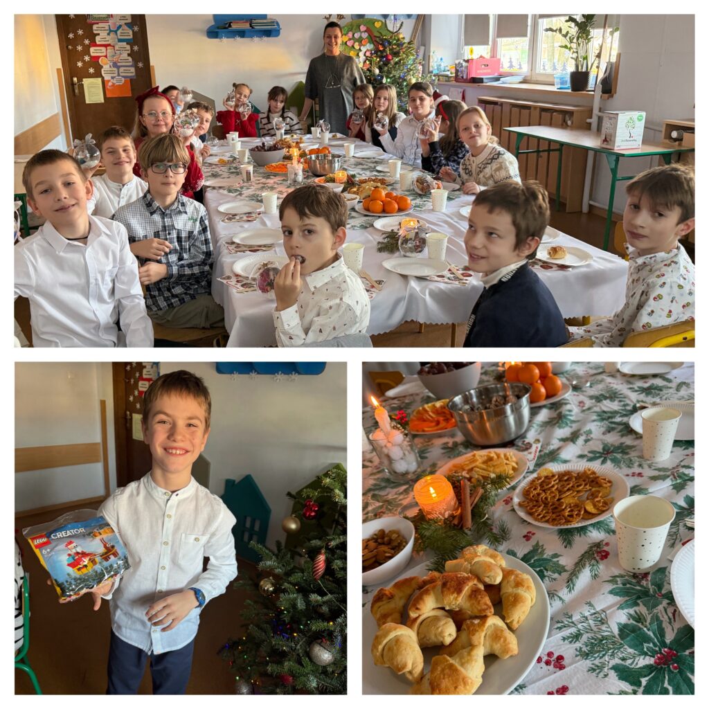 Nasze klasowe spotkanie przed świętami było kolejną, niezwykłą okazją do wspólnego spędzenia czasu. Rozpoczęliśmy je od serdecznych życzeń, a następnie zasiedliśmy przy wspólnie przygotowanym stole. Później przyszedł czas na obdarowywanie się prezentami, które sprawiły nam wiele radości i wywołały mnóstwo uśmiechów. To było nasze ostatnie takie spotkanie na tym etapie