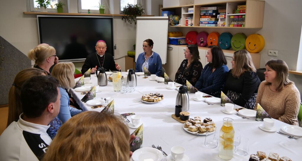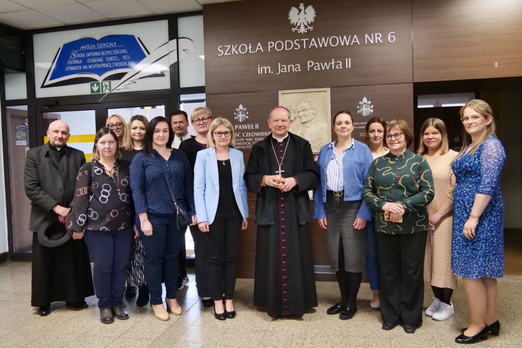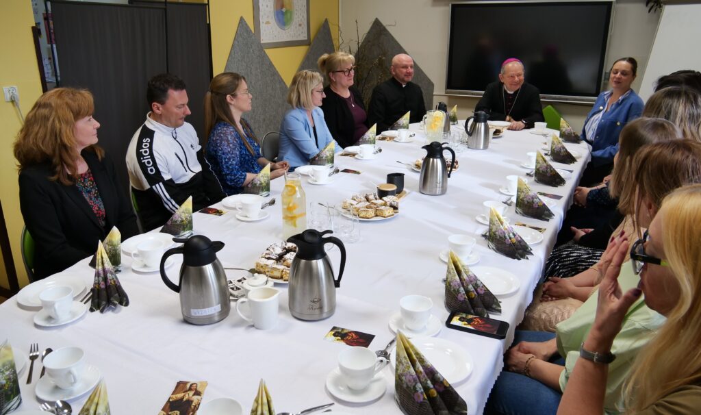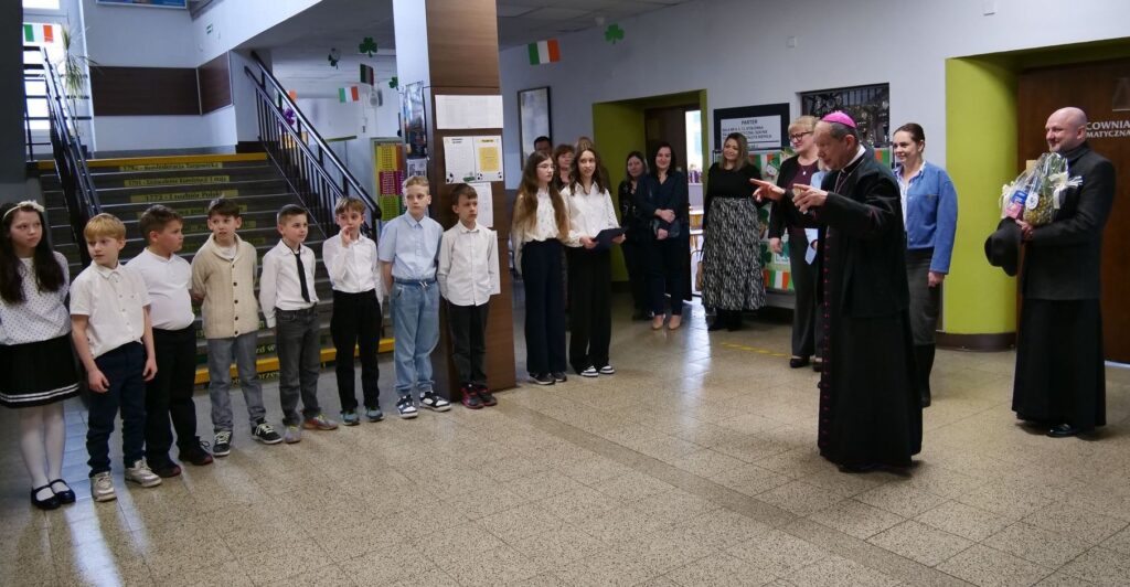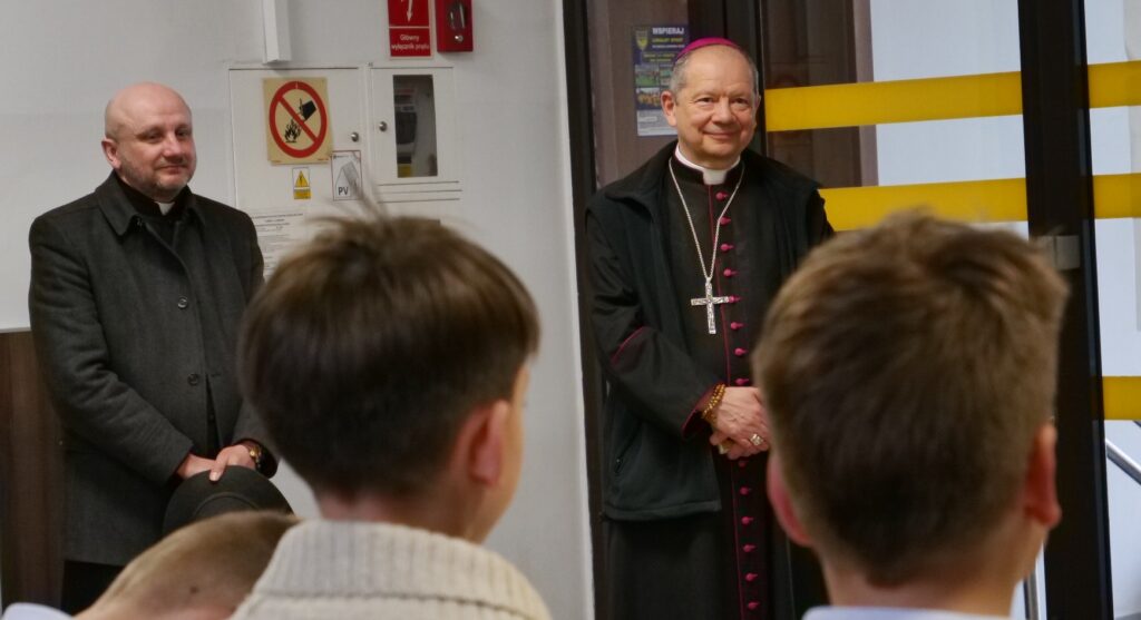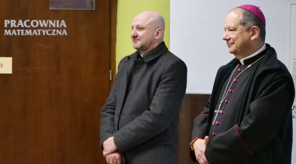 W piątek 20 marca naszą szkołę odwiedził szczególny gość – pochodzący z Mikołowa ksiądz biskup Grzegorz Olszowski. W murach szkoły piosenką i miłym słowem przywitała go grupa uczniów oraz dyrekcja szkoły. Następnie przy kawie i herbacie biskup spotkał się z przedstawicielami grona pedagogicznego. Było to niezwykłe miłe spotkanie, pełne wspomnień o szkole oraz rozmów o wyzwaniach współczesnej młodzieży.